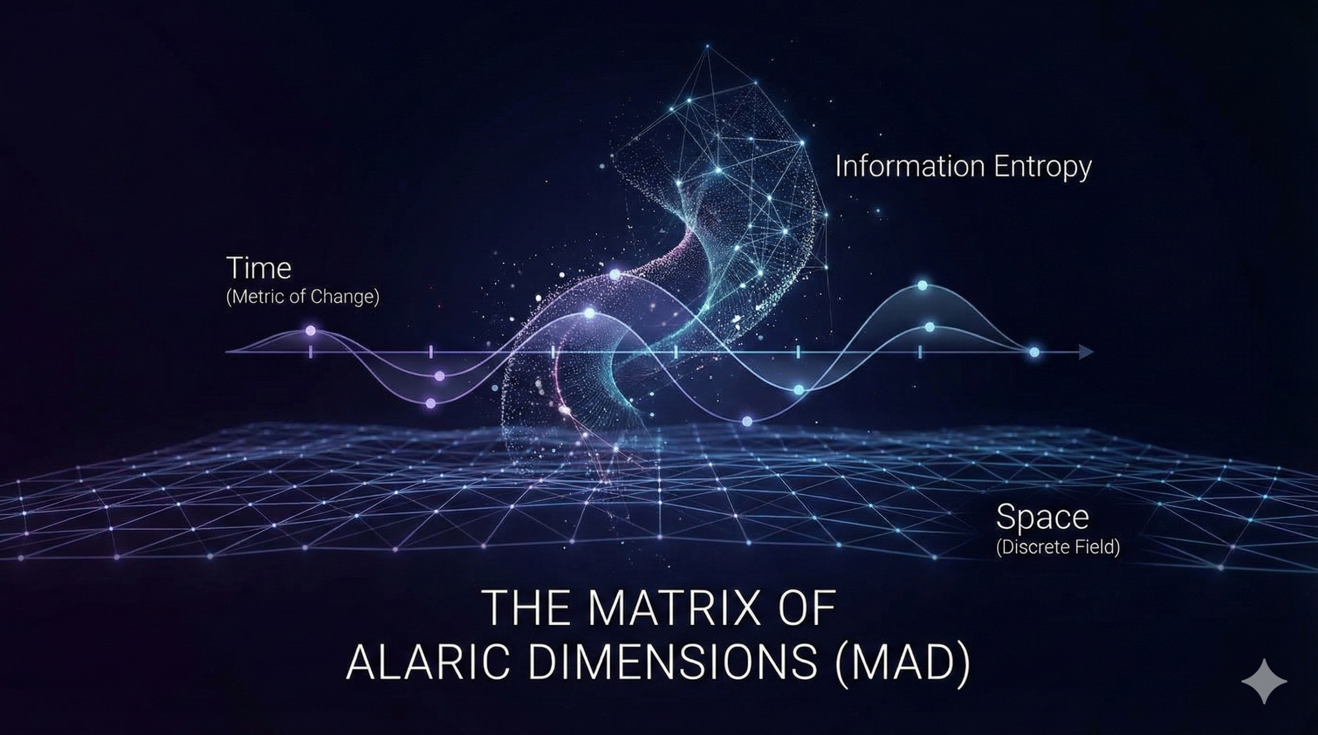- 第 1 至第 3 維(空間):能量的離散場域 (The Discrete Field)空間從來不是實體的容器或布幕。空間存在的唯一系統意義,是作為能量大爆炸後的底層拓撲,提供一個讓極高能量得以冷卻、散開,並維持「離散狀態」的基礎幾何場域。